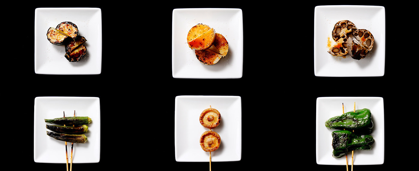 野菜炭焼き | しいたけ串…250円 ピーマン…220円 おくら…250円 長芋…220円 ズッキーニ…220円 中橋農園直送!加賀蓮根(季節限定)…250円 |